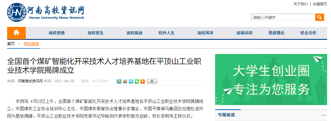 据悉,4月21日,“全国煤矿智能化开采人才培养基地鉴定工作会议”在平顶山工业职业技术学院顺利举行。4月22日下午,平顶山工业职业技术学院在图书馆报告厅还举行了“1+x”煤矿智能化开采职业技能等级证书制度试点工作说明会。上述会议共有来自中国矿业大学、西安科技大学、运城职业技术大学、陕西能源职业技术学院、华北煤炭科技学院、淮南职业技术学院、神木职业技术学院等其他煤炭行业院校的专家学者共计100余人参加。