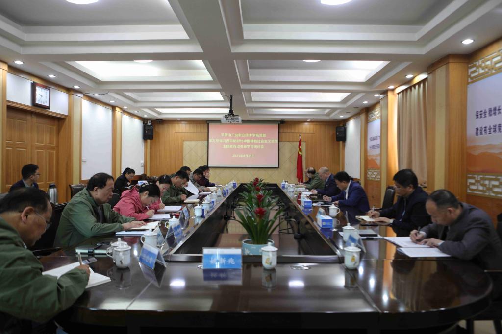 为扎实开展学习贯彻习近平新时代中国特色社会主义思想主题教育,4月25日上午,学校在办公楼第二会议室召开学习贯彻习近平新时代中国特色社会主义思想主题教育读书班学习研讨会,校党委书记毕晓阳主持学习研讨会,校长李树伟,副校长李新玉,纪委书记李清锋,副校长张立方、刘怀珍出席会议,全体副处级以上干部参加学习研讨会。