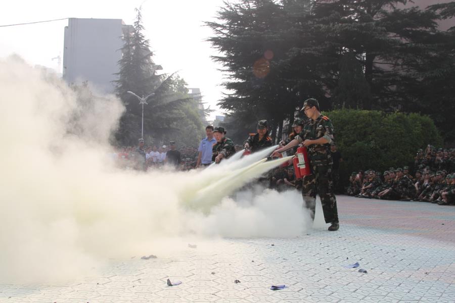 为切实提高2017级全体新生的消防安全素质,进一步提升火灾防控能力,减少火灾事故发生,根据河南省军区战备建设局、河南省教育厅、河南省公安消防总队《关于全省消防进军训工作实施方案的通知》要求,学院于9月21 日上午,在2017级全体新生军训期间,组织开展了“消防安全进军训”活动,并在升旗广场举办了2017级新生消防灭火实战演练活动。