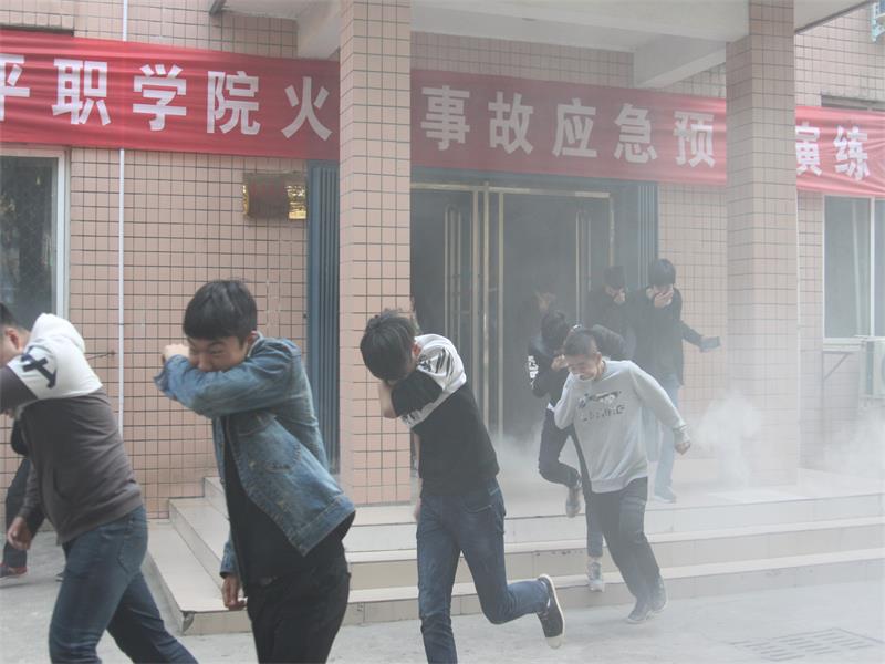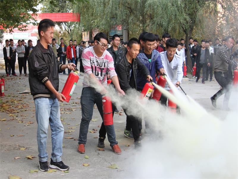 四是特邀平顶山民安防火中心胡志强教官到校为师生普及消防安全常识和火灾应急疏散自救逃生演练和灭火实战演练知识,胡志强围绕近年来发生在学校内部的火灾案例,向学生讲解了在宿舍内违规使用大功率电器和劣质排插等引发火灾的危险性,使大学生深受教育;在应急疏散演练中,新苑3号公寓楼发生模拟 “火灾”,楼内浓烟弥漫,参与演练的学生在老师迅速组织学生有序撤离,用衣袖、毛巾等捂住口鼻,弯腰沿着楼内走廊墙壁、疏散楼梯按预定的线路迅速撤离,在规定时间内全部疏散到了指定安全地点。整个过程紧张有序,真实的场景让同学们严肃地意识到了火灾的危害,应急疏散演练活动达到了预期效果;在灭火实战演练中,胡志强讲解了使用灭火器灭火时要掌握“一提二拔三对准四喷”的操作要领。首先提起干粉灭火器将其上下颠倒摇晃几次,使筒内的干粉松动,然后拔掉保险销,站在距离火场2-3米处的上风口方向,一手紧握喷嘴对准火源根部,一手握住压把喷射药粉灭火。随后参与演练人员分组按照灭火器的操作要领,手持灭火器对“火灾”进行灭火演练,亲身体验了使用灭火器扑救初期火灾的感受。