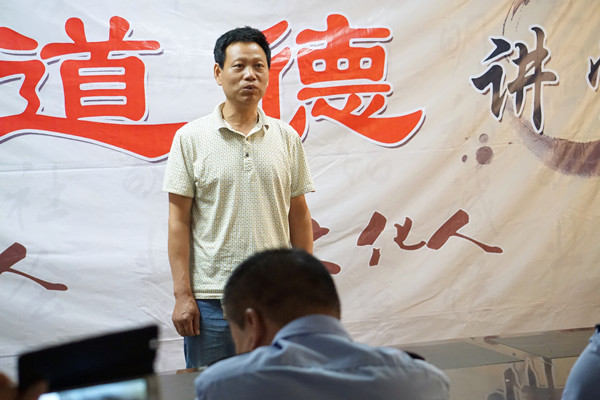 “唱一首歌”环节,一曲富有感染力的《爱的奉献》歌曲,迅速将大家的情绪带入到道德讲堂活动中来,只要人人都献出一点爱,世界将变成美好的人间!她唱出了大家共同的心声。在诵读经典环节,一段 《道德经》 “上善若水。水善利万物而不争,处众人之所恶,故几于道。”让在场教职工体味到最高的善应像水那样,水善于帮助万物而不与万物相争。我们应像水一样,既要有如气势磅礴飞流直下的大气,融入山川,滋养大地。又要有能滴水穿石的韧劲,坚持不懈的恒心,去突破工作生活中的一切艰难。