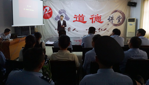 5月25日下午,由学院文明办主办、武装保卫处党总支和校产总公司党总支联合承办的2017年院第三期道德讲堂在校产公司会议室举行。