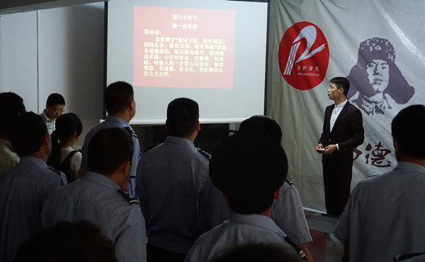 “中央电视台推出的八集系列节目,讲述了为长征火箭焊接发动机的国家高级技师高凤林、C919大飞机钣金工王伟等8位不同岗位的劳动者;在集团,被誉为“中国第一卷绕工”的帘子布发展公司的张国华等“大国工匠”的感人故事,他们都拥有一个共同的闪光点——热爱本职、敬业奉献、勤勤恳恳、兢兢业业、尽职尽责、精益求精,在平凡的岗位上创造出了不平凡的业绩,缔造自己的人生追求,实现了人生价值。让我们一起走进道德讲堂,沐浴道德洗礼,品悟道德力量,让心灵在道德讲堂得到净化、洗礼和升华!武装保卫处党总支王天胜开场致辞后,学院第三期“道德讲堂”拉开序幕。