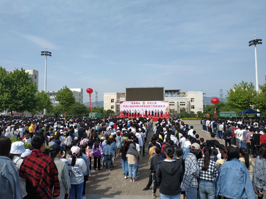 5月9日下午,平顶山市2019年大学生征兵工作正式启动。军分区司令员陈卫,市征兵领导小组组长、副市长王朴,以及驻平高校分管领导、武装部长,各县(市、区)政府分管征兵工作的副县(市、区)长、人武部部长,城乡一体化示范区、高新区管委会分管征兵工作的副主任及驻平5所高校部分大学生共计5000余人参加。市征兵领导小组副组长、军分区副司令员冯亚辉主持启动仪式。