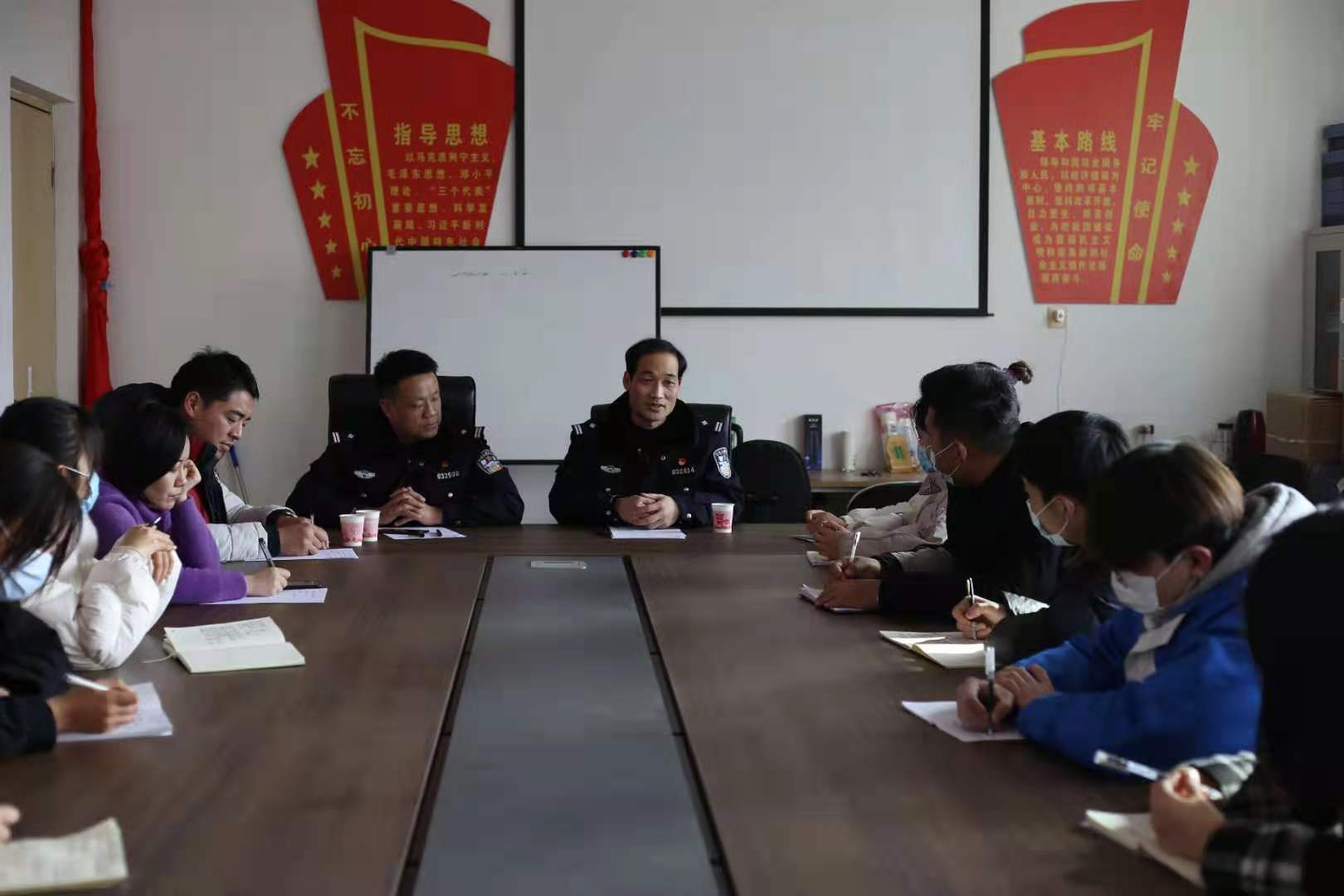 最后、反诈骗宣传队与两位干警建立了微信群,武保部参会人员表示:我们在微信群里会经常发送防诈骗知识,大家要加强互动交流,遇到问题我们会随时解答,希望宣传队的同学们认真学习,掌握更多的防诈骗知识,尽快进入角色,分批对全校各院系学生进行防诈骗知识宣讲,在全校范围内营造一种抵制诈骗犯罪发生的有效氛围,为构建平安和谐校园贡献自己的一份力量。