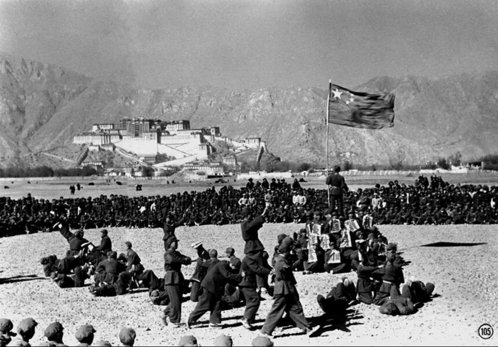西藏和平解放后,人民解放军与藏民在布达拉宫前欢度新年。 新华社图片