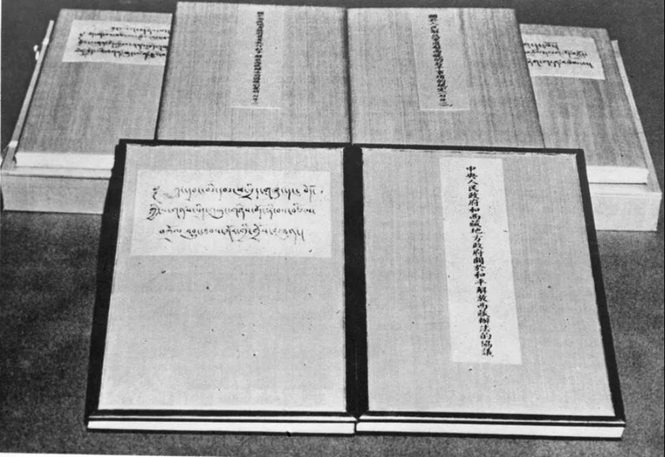 1951年5月23日签订的《中央人民政府和西藏地方政府关于和平解放西藏办法的协议》原本。