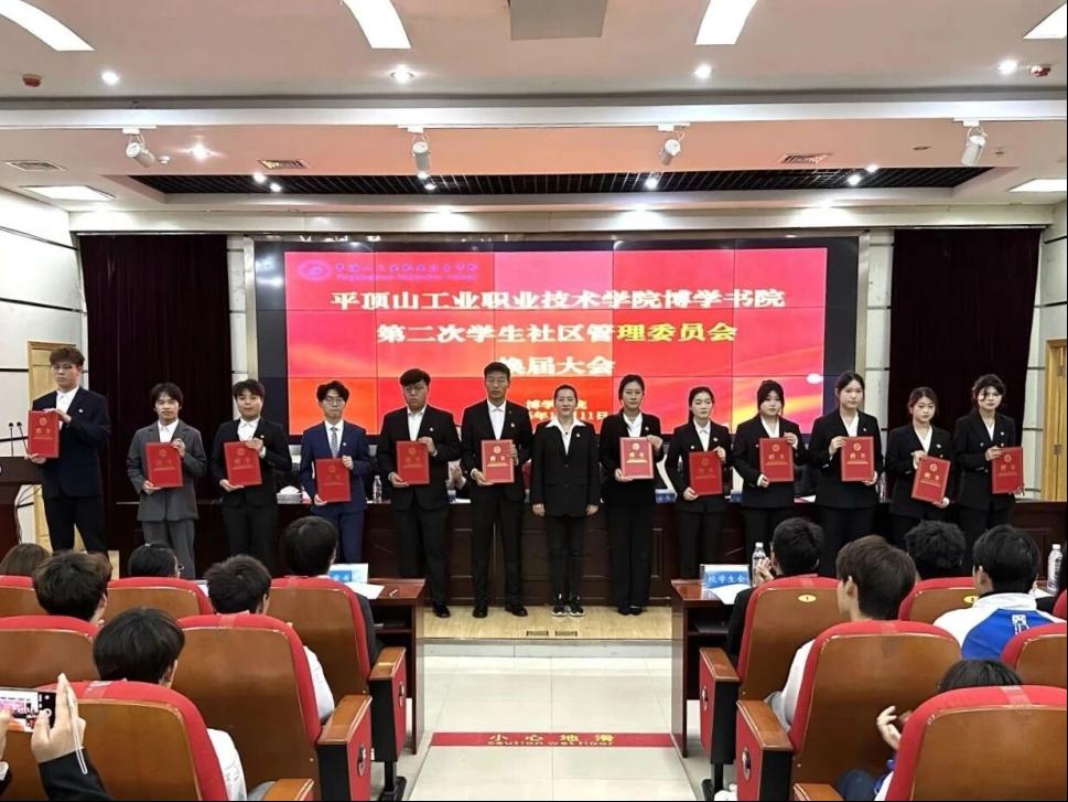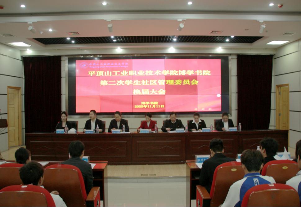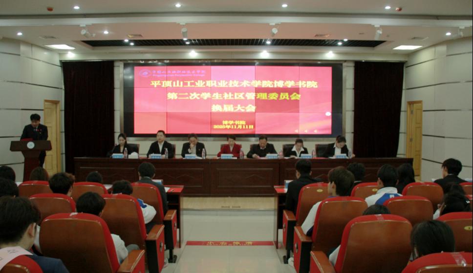 2025年11月11日下午15时,平顶山工业职业技术学院博学书院学生社区管理委员会第二次换届大会在庄严肃穆的氛围中隆重开幕。本次大会凝聚青春力量,总结过往成效,擘画未来蓝图,完成了学管会的新老交替,为书院“一站式”学生社区建设注入了全新活力。学生处及博学书院师生代表共260余人参加了本次会议。