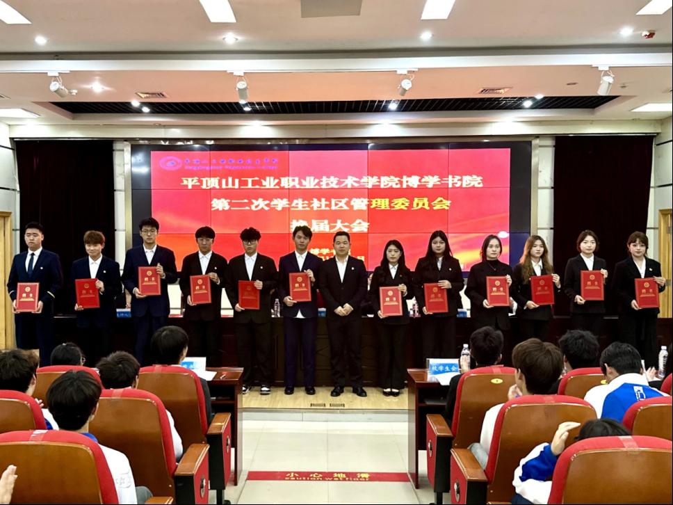 会上,宣读了《平顶山工业职业技术学院博学书院第三届学生社区管理委员会中心主任和各部门负责人名单》。书院领导老师为新当选的学管会中心主任、第一组成员及第二组成员颁发了聘书。这不仅仅是一纸聘书,更是一份沉甸甸的责任与信任的传递。