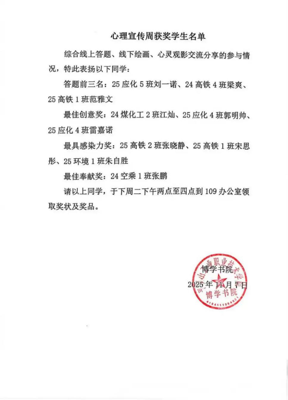 心灵的成长从不停歇,博学书院的心理关怀也始终在线~ 愿每一位同学都能带着活动中的收获,心向暖阳,从容前行,在成长路上收获更多温暖与力量!