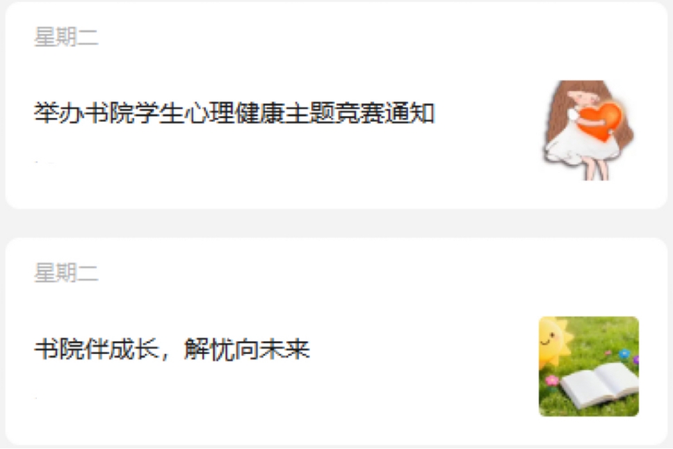 公众号推送的心理健康小贴士,用实用干货帮大家化解宿舍磨合、学业压力等日常烦恼,累计阅读 369 次。