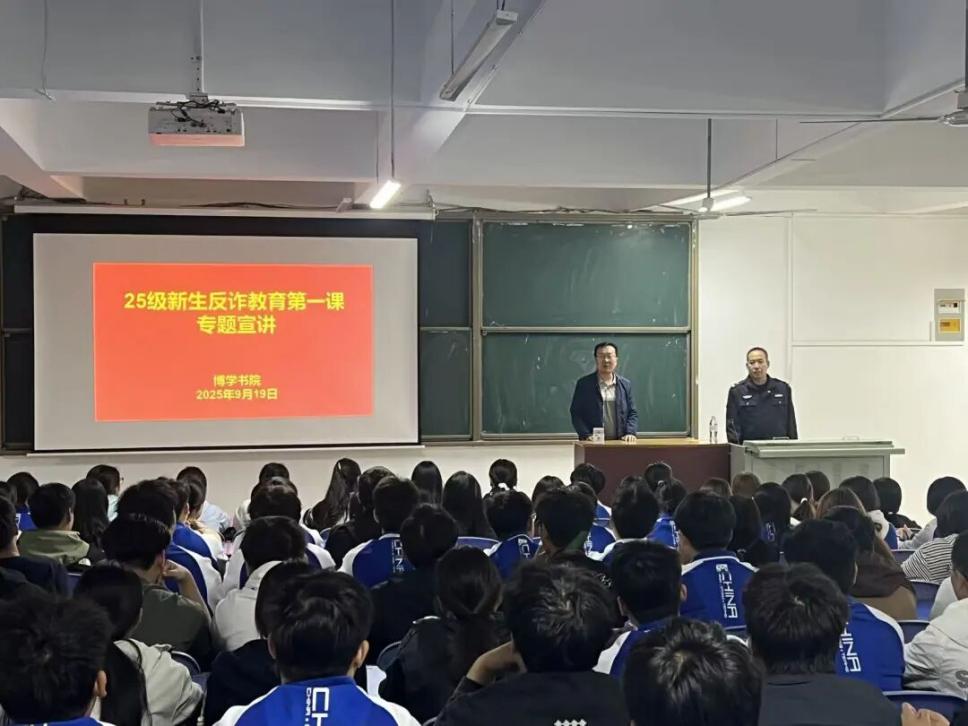 金秋九月,丹桂飘香,平顶山工业职业技术学院博学书院迎来了25级新生的到来。为切实提升新生的电信网络诈骗防范意识,守护好同学们的 “钱袋子”,9月19日上午,博学书院精心组织开展25级新生反诈教育专题宣讲活动,特别邀请北渡派出所警官现场授课,为书院全体25级新生带来了一堂生动且实用的 “反诈安全课”。