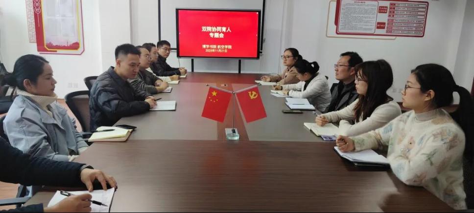为进一步完善双院育人机制,凝聚育人合力,11月21日下午,博学书院与航空学院在院士楼二楼会议室召开 “双院协同” 育人专题会。博学书院、航空学院相关负责人及教研室主任、专职辅导员、专业教师代表齐聚一堂,共商学生培养大计。