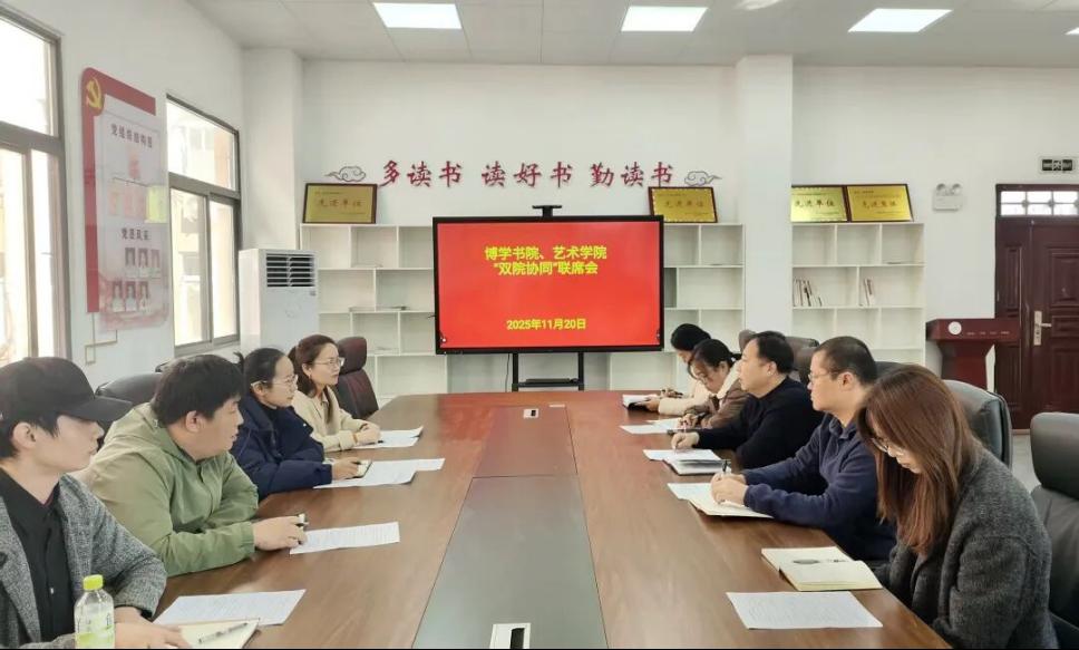为深化协同育人机制,共同谋划成长路径,11月20日上午,博学书院、艺术学院在大学生党员服务总站召开了“双院协同”联席会。博学书院、艺术学院相关负责人及教研室主任、专职辅导员、专业教师参加会议。