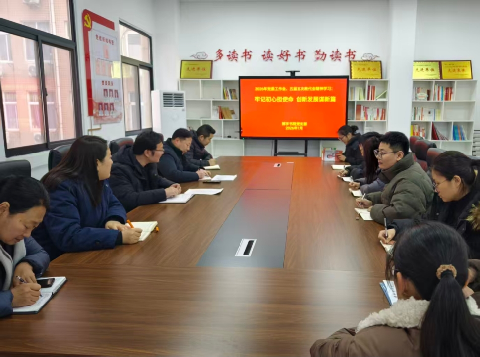 1月29日下午,博学书院全体教职工在大学生党员服务总站以“牢记初心担使命 创新发展谋新篇”为主题,开展了学校2026年党委工作会议和五届五次教代会精神学习贯彻落实专题会议。会议由博学书院负责人主持。