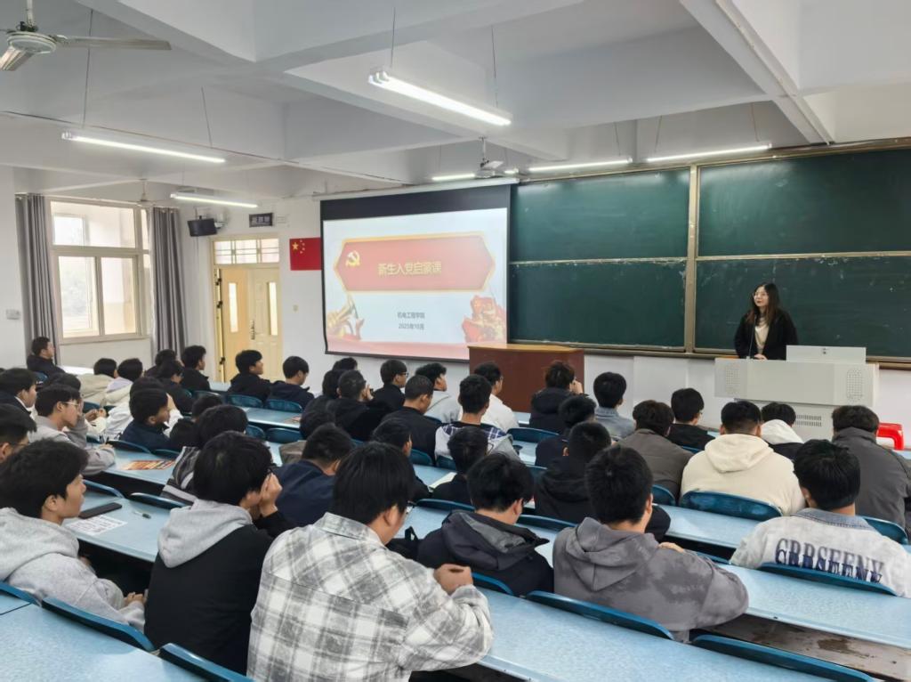 为帮助新生树立正确的政治信仰,明确入党初心与使命,10月20日,机电工程学院邀请马克思主义学院教师杨祁瑞,为2025级机电一体化技术专业学生带来一堂生动深刻的新生入党启蒙课。