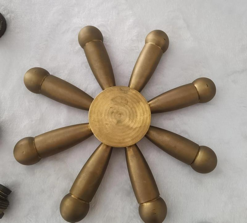 船舵采用黄铜的材质,运用了粗车精车钻孔,船舵摆件主要由一个基座和八个手柄组成,它们之间采用螺纹联结。
