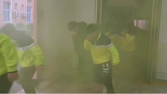 “着火啦!着火啦!”,急促地警报声将师生们带入了模拟学校发生火灾的情境中。教师代表宣布应急演练开始,并向全体师生发放毛巾捂住口鼻,弯腰前行、有序小跑、疏散指令。只见,学生和老师在各疏散人员的有效组织下,从安全通道撤离至安全地带,撤离现场秩序井然,各项救援工作有序进行。