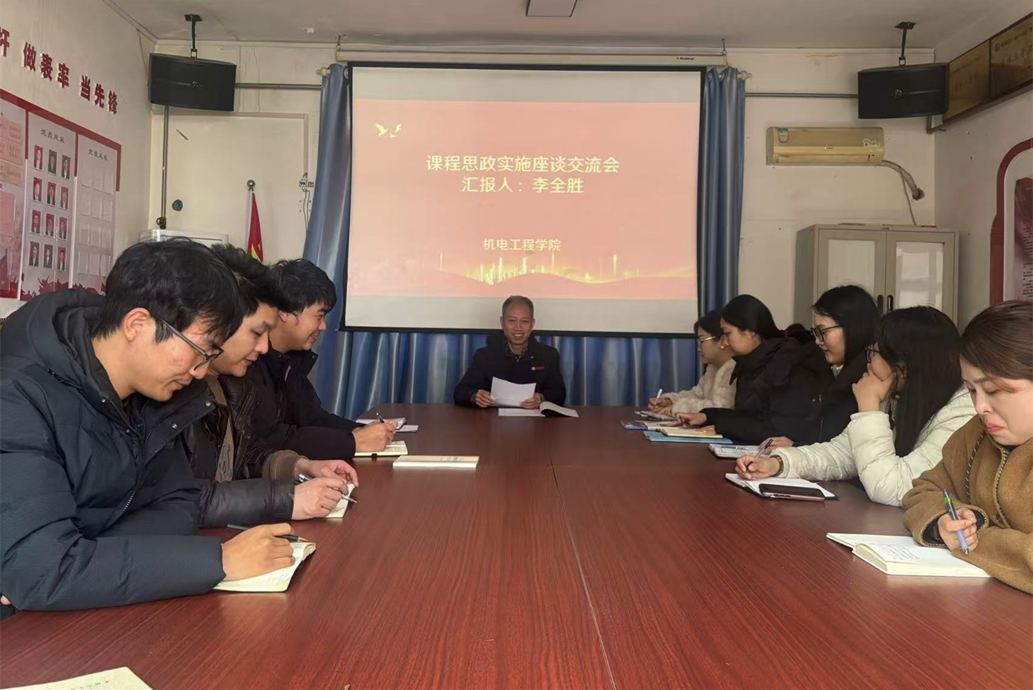 3月10日,机电工程学院举办课程思政实施交流会,学院教学副院长及全体青年教师参加。