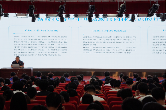 为深入学习贯彻习近平新时代中国特色社会主义思想和党的二十届三中全会精神,落实习近平总书记关于加强和改进民族工作的重要思想,进一步铸牢中华民族共同体意识,近日,党委统战部与校团委在701报告厅联合举办了“铸牢中华民族共同体意识”专题培训。培训由党委统战部牛金涛老师主讲,面向300余名“青马工程”学员和学生信息员,旨在增强青年学生的民族团结意识,为中华民族伟大复兴培养坚强的青年力量。