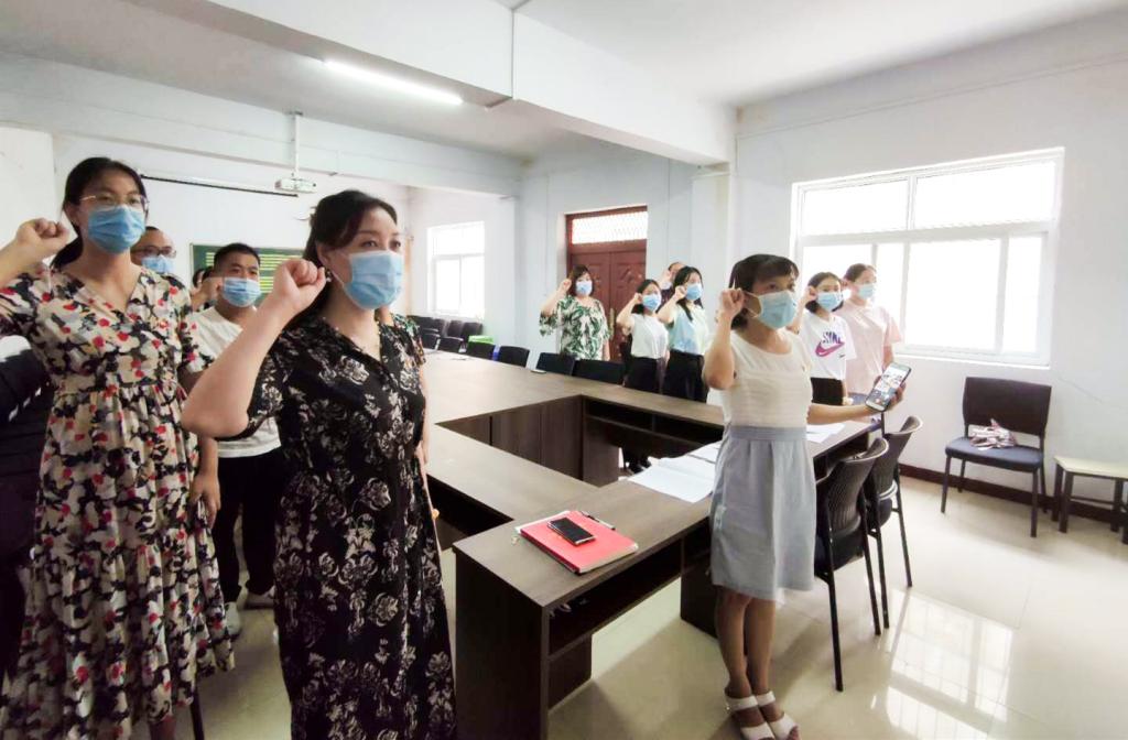 为庆祝中国共产党成立99周年,为弘扬党的优良传统和优良作风,进一步激励广大党员发挥先锋模范作用,7月3日下午,艺术学院党支部在党员活动室开展了“牢记初心使命 争当出彩先锋”主题党日活动。