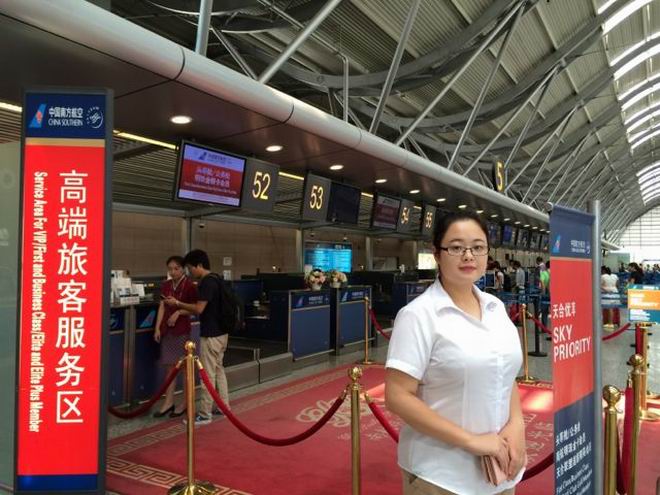 在工作人员的引导下,两位老师参观了机场航站楼,并对航站楼的功能设置及布局,有了一个全面的了解。随后,她们学习了值机工作的流程和具体工作要求。值机工作是航空服务中的重要工种之一,包括对旅客信息的核对、座位的安排、行李的托运等繁琐且细致的工作,对工作人员的素质水平要求很高,职业水平直接影响了工作的质量。徐潇和殷媛在学习中也思考着在教学中学生培养的方案和课程设置。