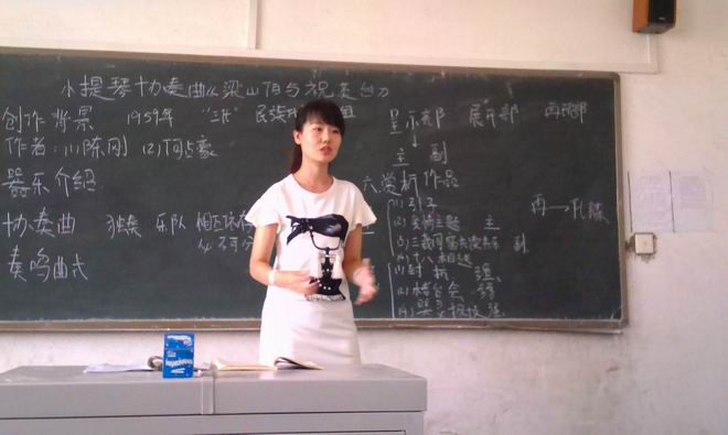 师傅们对徒弟的板书设计 、课件制作、教态等环节进行指导,在教室里进行模拟课堂训练。徒弟们虚心向自己的指导教师学习授课技巧、探讨课程教学的整体思路。7月24日艺术学院在2号教学楼403和405进行了艺术学院青年教师教学比赛选拔赛。青年教师刘阳说:“作为一名刚走出校园的大学毕业生,现在再次走进校园,走进那个无比熟悉的教室,心中的激动难以按捺,只是唯一不同的是身份的转化,从坐在教室接受知识变成了站在讲台之上传授知识,我的内心是无比激动和骄傲的。为了使我们这些新教师们能尽快适应教学工作,学院组织我们参加暑期培训。今天我们几位青年教师一起又参加艺术学院青年教师教学比赛选拔赛,我们得到了很大的收获,在比赛中查漏补缺,相互学习交流,力争代表艺术学院参加全院的教学比赛。”
