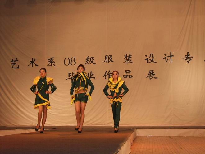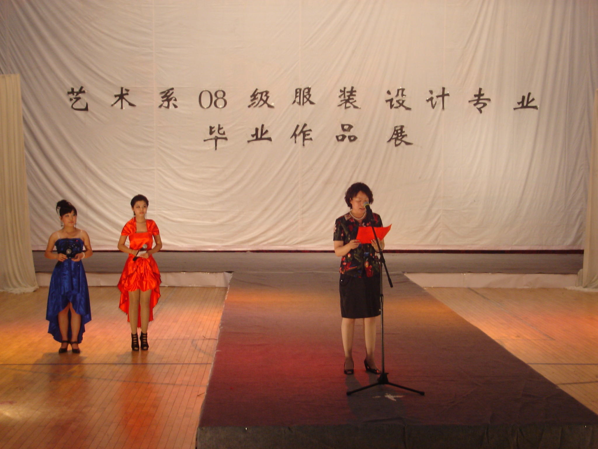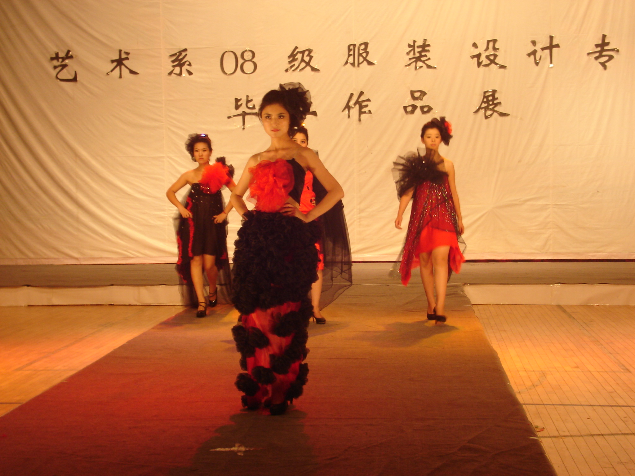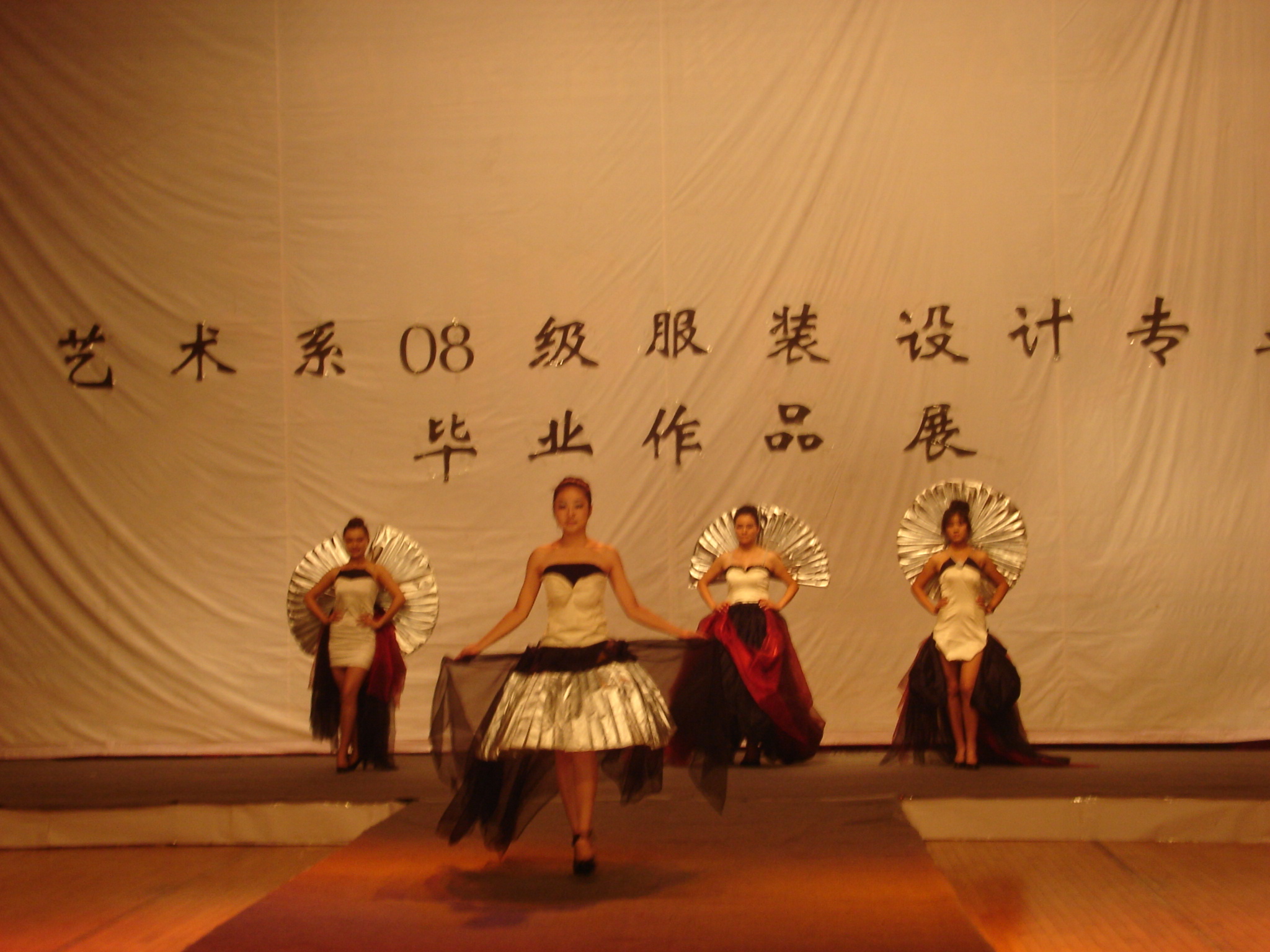 6月10晚上七点,艺术学院2011届服装设计专业毕业生作品展演在综合馆大厅隆重举行。学院李幸福院长、李树伟院长和教务处、督导处、就业处等领导观看了毕业展,应邀参加活动的还有平顶山市部分服装企事业单位知名人士。本届服装设计专业125名毕业生,43个系列作品,共150余套服装,倾注着每位毕业生的设计思维与体味生活的对话,艺术系服装专业教师协作指导。