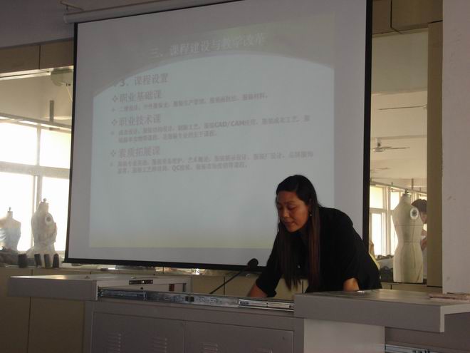 汇报会上,服装设计、艺术设计、音乐表演的专业教研室主任李振华、朱乐天、赵沛依次进行了专业剖析PPT汇报。他们针对本专业的基本情况、专业定位、人才培养模式、岗位分析、课程体系构建、教学内容与方法、师资队伍、实训基地等方面进行了全面详细的剖析。