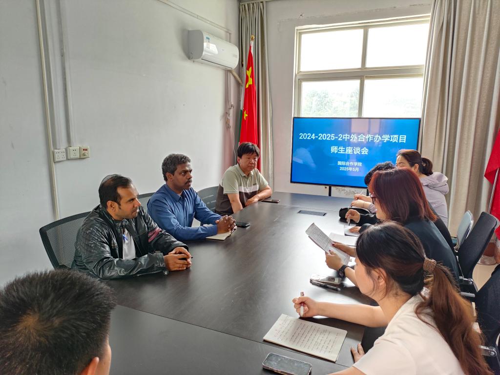 5月13日下午,国际合作学院在409会议室举行中外合作办学项目师生座谈会。来自马来西亚世纪大学外籍教师Vinukumar博士和讲师Mathan、国际合作学院教师、博学书院代表,以及机电一体化技术专业中外合作办学项目23级和24级部分学生代表参加了会议。