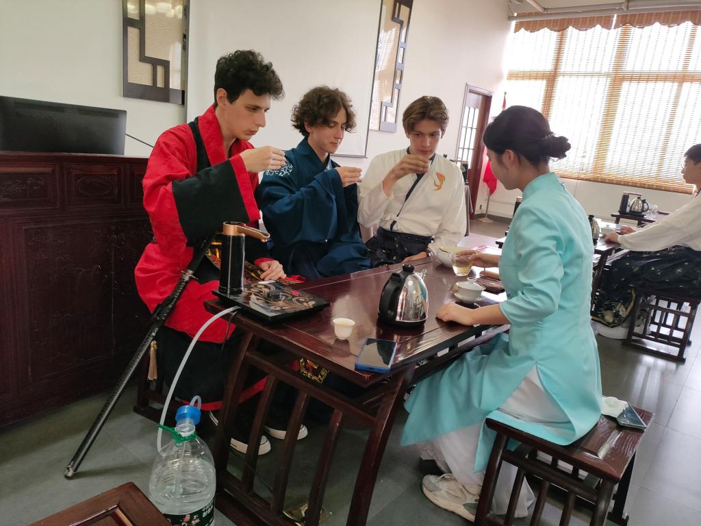 研学团一行到我校中华优秀传统文化传承基地实地体验。伴随着陪同人员细致深入的讲解,代表团一行着汉服、习茶艺、抚古琴、练射箭,更有中国书法爱好者现场“挥毫泼墨”,沉浸式深度感受了中华传统文化的博大精深。