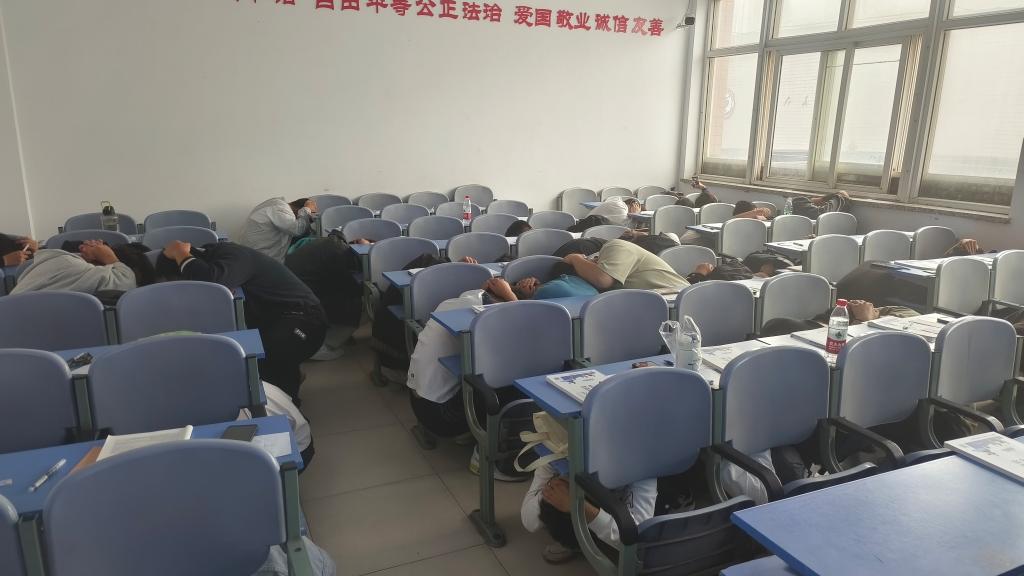 (同学们进行防震演练)