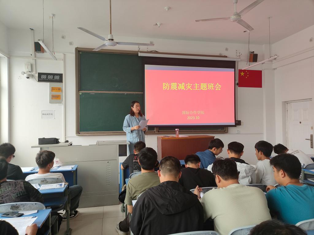 为增强同学们的安全防范意识,提高同学们的安全防范能力,全面普及防灾减灾常识,提高应变能力,国际合作学院于10月24日开展了防灾减灾安全教育主题班会,辅导员及23级全体学生参加本次班会。