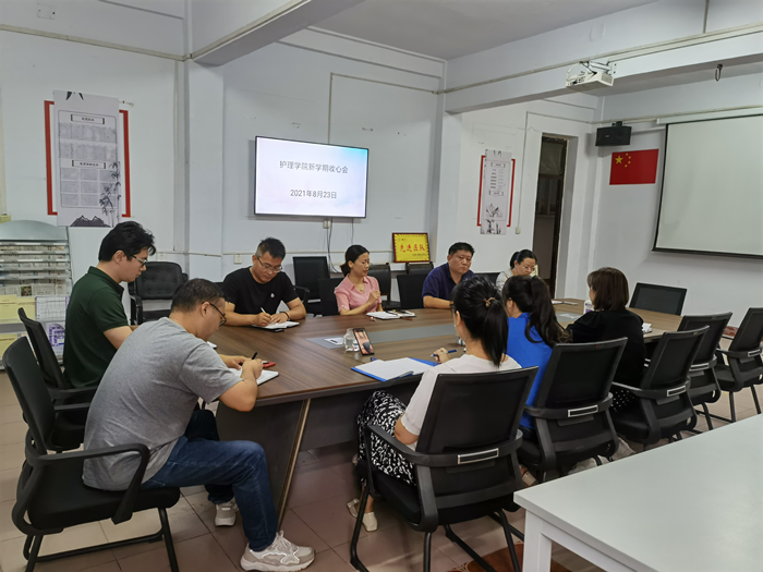 会上,护理学院负责人就暑期教育教学工作的开展情况进行了回顾总结,同时传达了学校关于新学期“平安开学 开学平安”精神的要求与政策,并对新学期如何组织教育教学、开展学生教育管理、继续加强校园疫情防控等工作进行了具体安排部署。会议要求,卫生所要继续做好校园疫情防控工作,针对目前德尔塔病毒在全国范围内有零星散发的现状,卫生所要对防控漏洞再排查、防控重点再加固、防控要求再落实,同时做好学生分批返校的疫情防控预案与准备工作,以及提前规划新生军训的医疗救治及体检的准备工作;各专业教研室做好秋季开学线上教学的各项教学资料的准备工作,扎实落实教育教学计划;全体教师要做好2021级新生报到入学的各项迎新工作安排。