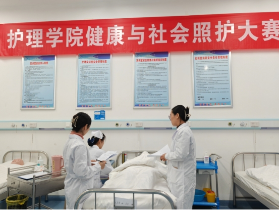 护理技能大赛包括理论考试及技能考核,重点考核各位选手的知识应用能力、临床思维能力、以及危急情况下对患者实施心肺复苏能力;健康养老照护大赛考核学生在医院模块下对患者进行血压测量,主要考核选在在贴近真实场景下,为老年人提供专业、规范的照护服务意识,使其照护需求得到满足,促进其身心健康和疾病康复,提高生命质量。