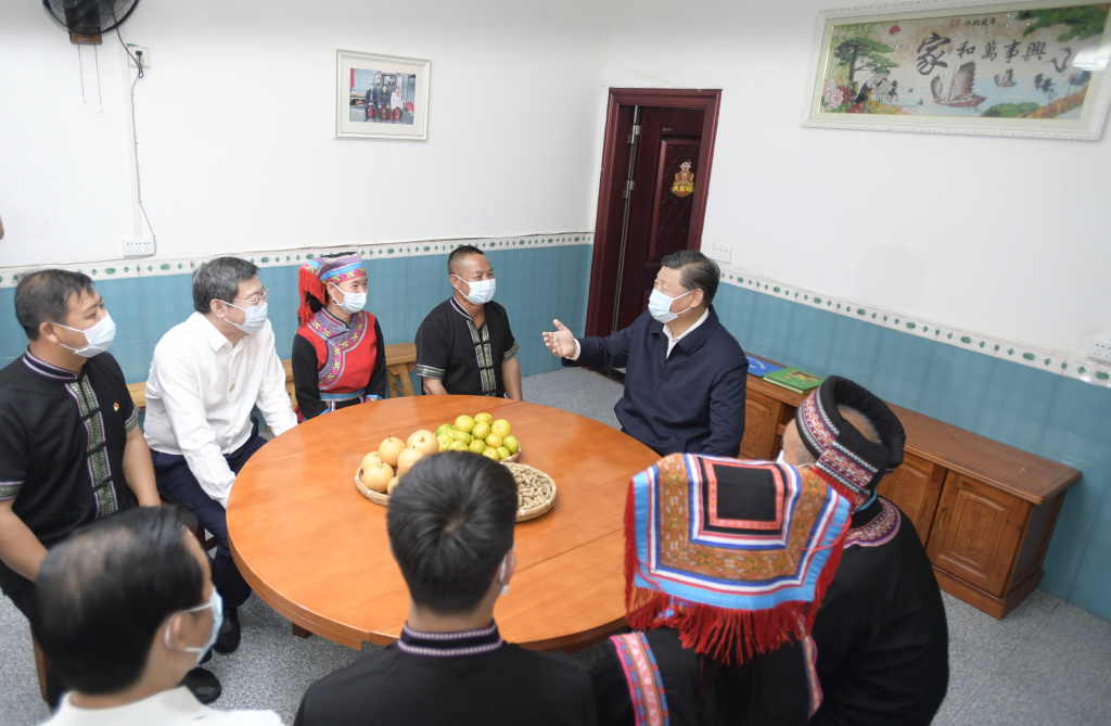 16日下午,在湖南省郴州市沙洲瑶族村考察调研的习近平总书记,走进“半条被子的故事”主人公徐解秀的后人——村民朱小红家中。朱小红告诉总书记,他在景区当讲解员,家里还开了农家乐,已经脱贫,生活越来越好。他连连感慨,共产党从给老百姓被子到给幸福路子,日子今非昔比。习近平强调:“因为有老百姓的支持,我们党才有了光荣历程、辉煌事业。你们家里的变化也说明一个道理,共产党坚持为民本色,说到做到。”随后,他步行来到村子广场,村民们热情欢呼着围拢过来。习近平对乡亲们说,中国共产党人自己有一条棉被也可以分半条给老百姓。建党近百年不忘初心,老百姓把共产党看成是自家的党,是老百姓的党。我今天到这里来,也是受教育。我作为一名共产党员、作为一名共产党的负责干部,本身也要不断受教育、不断受洗礼、不断受启示,履行好我的职责,同14亿中国人民在一起、同9000多万党员在一起,把我们国家建设得更好,让我们的老百姓更加开心、更加幸福。