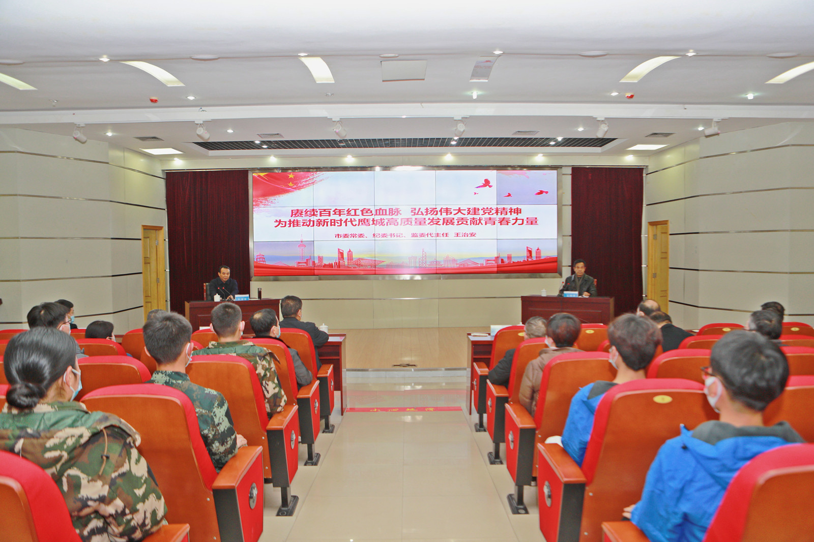 思政课上,王治安紧扣“赓续百年红色血脉 弘扬伟大建党精神 为推动新时代鹰城高质量发展贡献青春力量”这一主题,从“在回望党的百年奋斗历程中,坚定听党话、跟党走的信心和决心;在凝望鹰城转型发展成就中,提升观大势、谋大局的耐心和恒心;在眺望民族复兴光辉前景中,树牢强本领、勇担当的初心和雄心”三个方面进行了系统讲授。