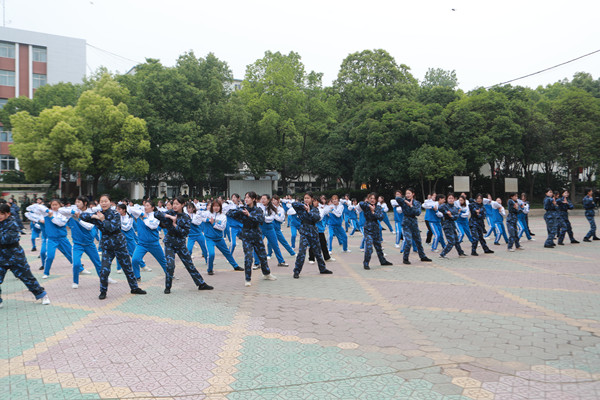 在特色方阵表演中,由护理学院组成的三声三相方阵,用整齐的动作表演了文明礼貌用语、三声(掌声、番号声、歌声)、三相(站相、蹲相、走相),她们用响亮的声音、干练的动作彰显了热血卫国的巾帼壮志;由计算机与软件工程学院、航空学院学生组成的女子防身术方阵,以上步冲拳、击掌冲拳、三步冲拳等一令一动、连贯动作等形式,展现了女子防身术的基本内容,她们排面整齐、斗志昂扬、一身正气,动作虎虎生威、拳拳有力,展现了平职学子自强不息、迎难而上、不怕艰辛、不怕困难的奋斗精神;由资源开发学院、尼龙化工学院学生组成的旗语方阵,以左红旗、右蓝旗的形式展现了旗语符号和旗语操,充分展现了团结、健康、奋进、坚强的平职学院风貌;由自动化与信息工程学院学生人组成的擒敌拳方阵,以弓步冲拳、反击勾踢、击腰唢喉等铿锵有力、整齐划一的动作,展现了平职学子敢于拼搏,吃苦耐劳,不怕困难,勇往直前的顽强奋斗精神。