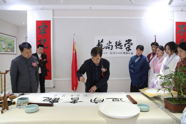李树伟致辞表示,学校以“传承优秀传统文化、弘扬华夏文明精髓、培养知行合一时代青年”为宗旨,筹备成立中华优秀传统文化传承基地,意义重大,影响深远。他强调,党的十八大以来,习近平总书记对传承发展中华优秀传统文化先后多次发表重要讲话,曾指出,“中华优秀传统文化是中华文明的智慧结晶和精华所在,是中华民族的根和魂,是我们在世界文化激荡中站稳脚跟的根基”。高校作为中华优秀传统文化传承发展的重要阵地,在人才培养过程中融入中华优秀传统文化,对于引导青年学生坚定文化自信,旗帜鲜明弘扬社会主义核心价值观,提振民族自豪感和凝聚力,实现中华民族伟大复兴的中国梦具有重要意义。他提到,学校始终坚持以习近平新时代中国特色社会主义思想为指导,充分发挥中国特色社会主义教育的育人优势,以社会主义核心价值观为引领,以立德树人为根本,以传承中华优秀传统文化为宗旨,通过明德书院建设、组织课前感恩词朗诵、开设传统文化课程、开展社团活动等举措,充分挖掘中华优秀传统文化价值内涵,不断激发了校园传统文化教育的生机与活力。他提出,学校将以此次基地揭牌为契机,推动中华优秀传统文化更深融入人才培养全过程,为社会培养更多有道德、秉操守、做奉献的新时代青年才俊,让民族自豪感、社会责任心在他们身上得以体现,成为奉献自我的精英群体,推动校园文化建设再上新台阶、文化育人再谱新篇章。