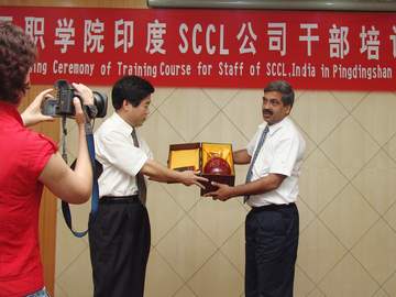 2006年9月,第五届国际矿山救援技术竞赛在我院隆重举行,参赛的印度辛格南尼煤炭公司队员对平煤集团在特殊的地质条件下,所取得高产高效的安全生产业绩,留下了深刻印象。他们希望派出中层干部前来学习。2007年3月25日,我院正式与印度辛格南尼煤炭公司签订外事培训协议,他们选派8名有着10年以上专业工作经历、工程师以上专业级别的中层干部到我院进行为期一个月的煤炭开采综合技术培训。