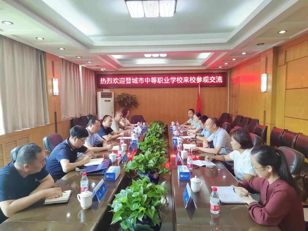 8月18日上午,晋城市中等专业学校党委书记、校长李雪明一行来校参观交流。学校在办公楼第三会议室召开交流座谈会,副校长张立方出席会议并讲话。招生处、实训中心、资源开发学院、机电工程学院负责人及相关人员参加会议。