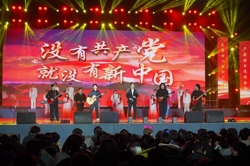 “梦·深耕”篇。情景朗诵《满江红》,句句豪言,道尽满腔赤诚,半生征战,写就铁血丹心,让民族气节在新时代熠熠生辉;乐队联唱《星火征途》,以热血摇滚致敬《映山红》的坚韧、《我爱你中国》的深情礼赞、《新长征》路上的勇毅、《没有共产党就没有新中国》的永恒荣光;舞蹈《健康绽梦向未来》,以银装械舞展青春活力,用五彩秧歌传健身热情,以创新舞姿践行强国使命。