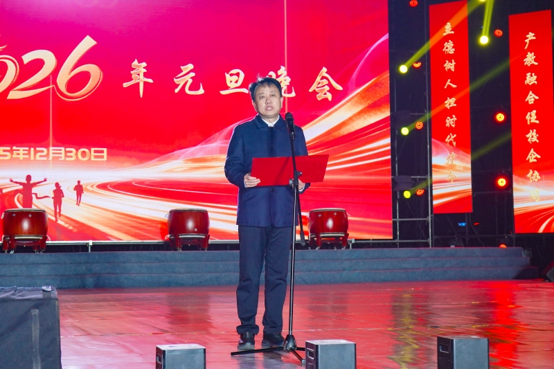 晚会开始前,李树伟致辞。他首先代表学校向各位领导和嘉宾的到来表示热烈的欢迎,向全体师生致以诚挚的问候。他指出,回首2025年,学校深入学习贯彻党的二十届四中全会精神,扎实推动党中央、国家重要政策落到实处;顺利入选第二批河南省双高校,成为了学校高质量特色发展新引擎;圆满承办2025年河南省行业职业技能竞赛,展现了学校办学硬核力量;学生再获世赛金奖,诠释了“技炫青春,能创未来”的职教精神;深化教育综合改革,将课堂延伸至“百里厂矿”,国家级团队通过验收,国家级项目顺利结项,省级质量工程项目30余项,彰显了产教融合新成果;长三角、珠三角就业联盟成立,搭建起人才培养就业需求“桥梁”,学生就业去向落实率全省领先;首批巴基斯坦留学生顺利报到,学校国际化办学迈入新阶段。展望2026,希望全体教师保持“胸怀强国志,锤炼强国技,勇建强国功”的信念,以矢志不渝的坚韧,坚决达成既定目标,以行稳致远的睿智,共同倾力铸就平职美好未来。希望全体同学珍惜“人人皆可出彩、人人皆能出彩”的伟大时代,锤炼过硬本领,涵养工匠精神,将个人理想融入国家与地方产业发展大局,用勤劳双手和智慧头脑,成就自我、服务社会、开创未来。