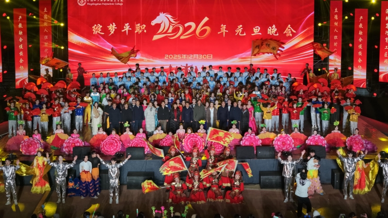 灵蛇曼舞辞旧岁,骏马奔腾迎新春。2025年12月30日晚,平顶山工业职业技术学院在体育场举行“绽梦平职”2026年元旦晚会。该校校长李树伟出席并致辞,中国平煤神马集团工会、党委宣传部相关负责人应邀出席,学校校友代表、全体在家校领导及全校师生现场观看,晚会同步线上直播,线上线下观看人数达5万余人。