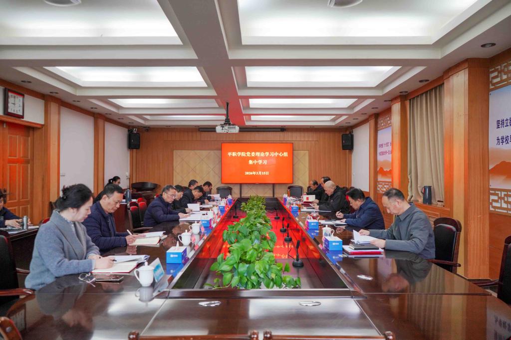 3月15日上午,学校党委理论学习中心组在办公楼第二会议室举行2026年第2次集中学习,专题学习习近平总书记在全国两会期间的重要讲话精神和全国两会精神。校党委书记毕晓阳主持,校党委理论学习中心组成员参加。