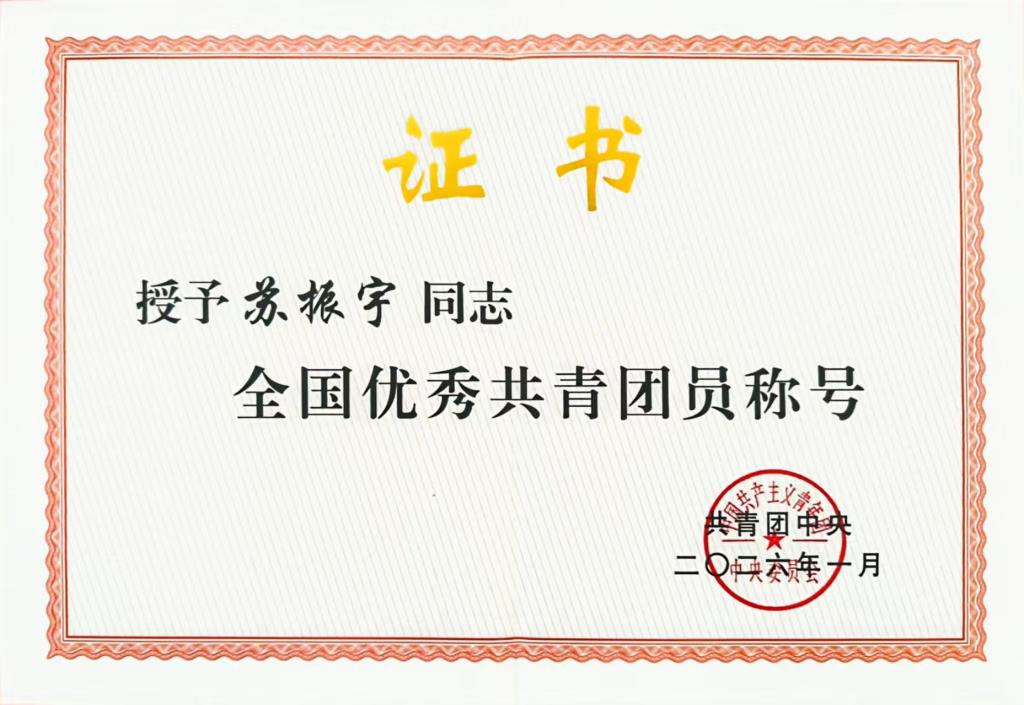 此次苏振宇同学获得共青团中央表彰,是荣誉更是激励。全校广大青年要学习青春榜样,坚定理想信念,练就过硬本领,勇担时代重任,努力成长为德智体美劳全面发展的社会主义建设者和接班人,为学校高质量发展贡献青春力量。