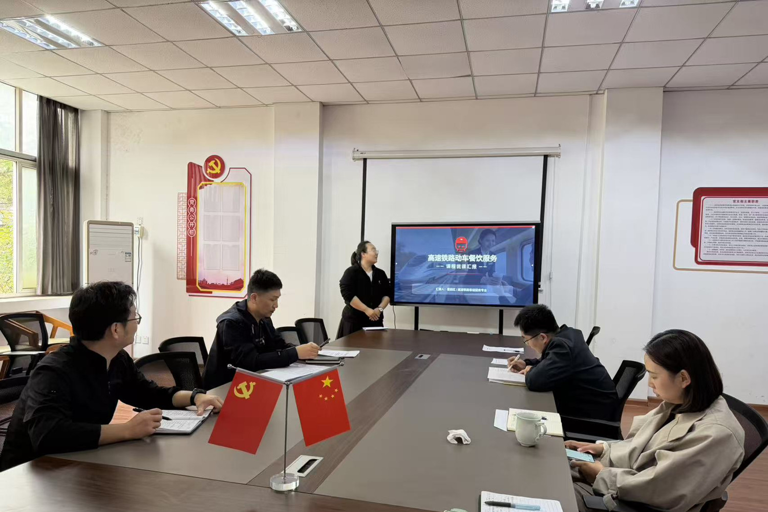 文化教育部开展“说课程”专题教研活动,全体教师参加。活动上,《军事理论》《国家安全教育》《劳动教育与实践》《大学英语》等课程负责人依次汇报,围绕六大维度展示建设成果。汇报结束后,评审小组紧扣“说课程”核心要点精准点评,充分肯定各课程准备充分、逻辑清晰、内容详实,课程建设取得阶段性成效,并针对课程思政深度融入、AI技术与教学融合创新、课程特色精准提炼等方面,提出针对性优化建议。下一步,文化教育部将抓实问题整改,深化教学改革,全面提升课程建设质量与人才培养水平,以扎实成效迎接省级办学能力评价。
