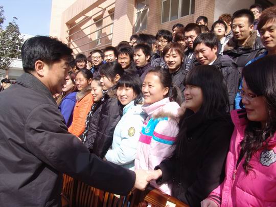 王永明一行到我院后,首先参观了展览室,认真听取了学院发展历史的讲解,在图书馆大楼前叮嘱近百名新疆籍学生,发奋学习,将来好为家乡为西部大开发做出应有的贡献。随后,王永明一行和中平能化集团领导一起与学生合影留念,并向学生发放了纪念品。参观院士实验楼时,在听取了学院领导介绍和讲解员的解说后,王永明充分肯定了我院的特色办学经验,夸赞学院不愧是国家首批示范性高职院校和全国文明单位,许多好的经验很值得新疆借鉴学习。(赵玉坤)