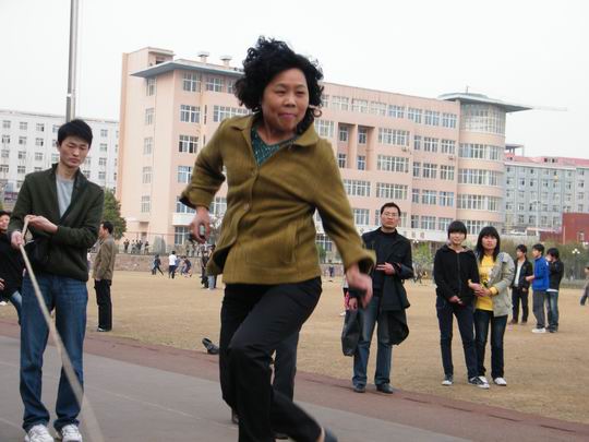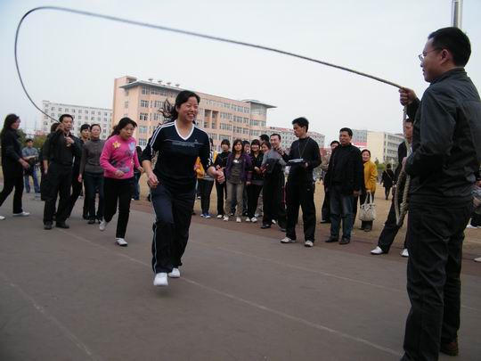 随着裁判的一声哨响,参赛选手手中的绳索顿时与地面相撞,有节奏的发出了“啪、啪”的响声。经过了一轮又一轮的激烈角逐,有的选手带着遗憾离开了,有的选手一路披荆斩棘,勇往直前。活动现场有条有序,异常热闹。在单位工会的积极组织下,全体教职工都对比赛充满了很大的兴趣和热情,一些单位的党政负责同志也与广大教职工一起参加了比赛。整个比赛充满了团结和谐的气氛,展现了广大教职工良好的精神风貌和体育道德。