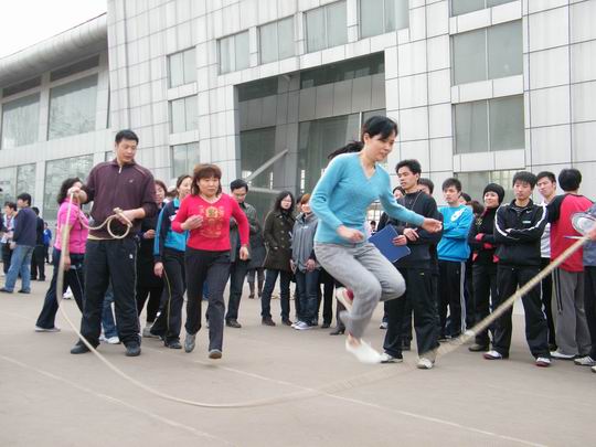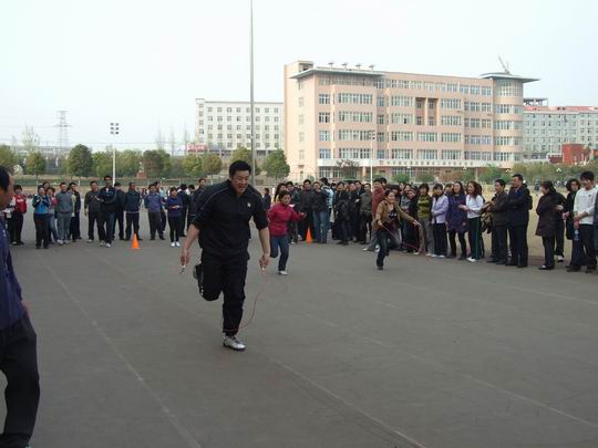 4月2日和4月6日下午院工会分别于在学院运动场组织开展了两场教职工跳绳比赛。文教部代表队获得集体接力跳大绳和迎面接力跳绳两项活动的第一名,图书馆、技工学校、艺术系、成教学院、物业公司分列集体跳大绳活动第二、三、四、五、六名;成教学院、艺术系、技工学校、图书馆、机关分列迎面接力跳绳活动的第二、三、四、五、六名。